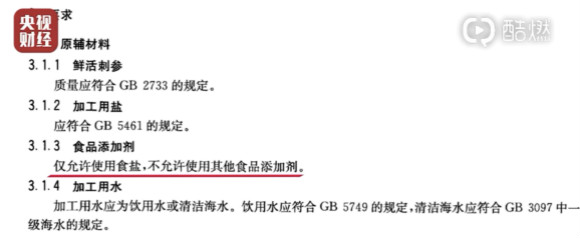 然而这种做法也是被明令禁止的。中华人民共和国水产行业标准《干海参》明确规定,加工干海参的食品添加剂中,仅允许使用食盐,不允许使用其他食品添加剂。