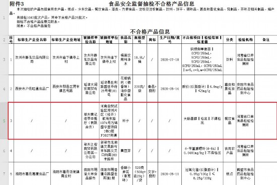 河南省市场监管局表示,针对抽检发现的问题,对于不合格样品涉及外省生产单位的,已按规定移送相应省级食品监管部门进行调查处理;对于不合格样品涉及省内生产经营单位的,已要求郑州、洛阳、平顶山、新乡、焦作、许昌、南阳、商丘、周口、驻马店、信阳、汝州、长垣、永城、固始等地市场监管部门对涉及单位依法处理,责令查清不合格产品的批次、数量、流向,召回不合格产品,采取下架等措施控制风险,分析原因进行整改,并依法予以查处。
