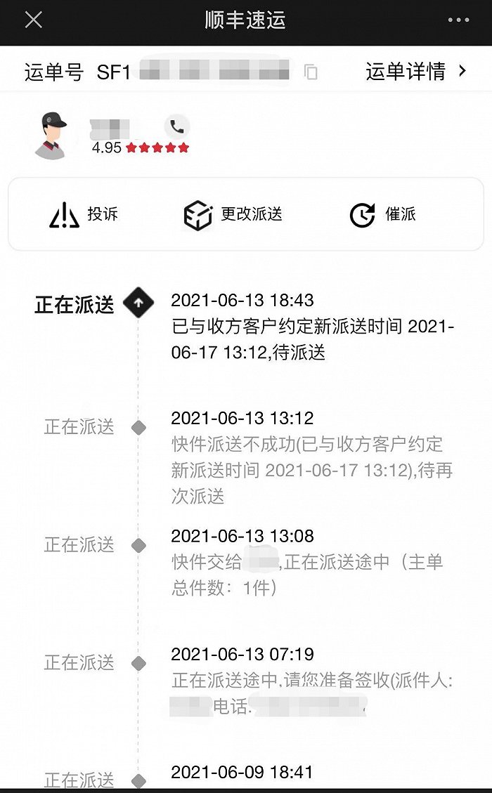 王先生认为,顺丰隐瞒事件真相,导致他错过了最佳的抢救时机。记者查询王先生提供的运单详情发现,王先生寄送的这批物品在6月8日到达上海向阳速运集配站,并在当天进入配送环节。按照王先生的要求,这单物品应在12日送达,但顺丰接下来的记录却显示6月13日“派送不成功”,待再次派送。