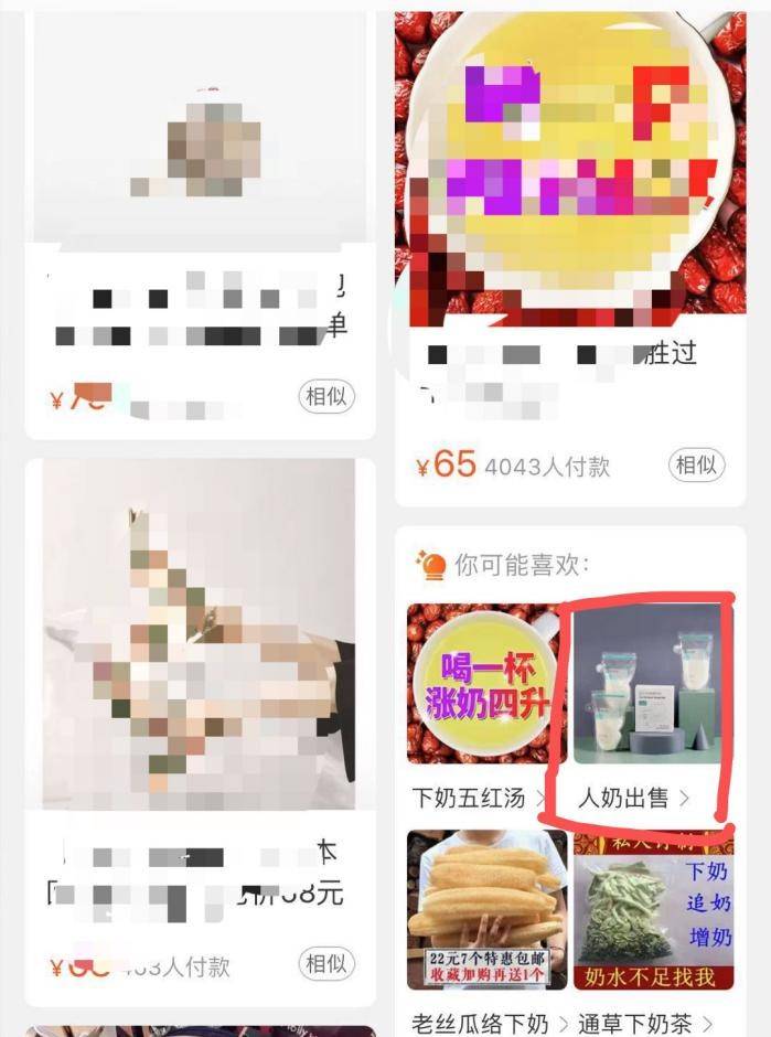 记者曾在某电商平台发现关于母乳出售的广告页面。