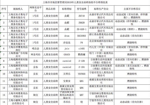 目前,14批次不合格儿童安全座椅产品均已停止销售并下架。
