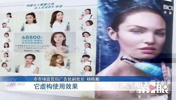 2019年11月25日,重庆市市场监督管理局公布了十大虚假违法广告典型,其中欧莱雅也在其中。通告称,欧莱雅(中国)有限公司在重庆某百货有限公司“欧莱雅”专柜发布印刷品广告,其内容含有:“法国碧欧泉8天肌肤犹如新生、明星达人挚爱之选、众人⻅证8天奇迹、肌肤问题一并解决68800人,已经⻅证奇迹水带来的肌肤新生......”等用语。