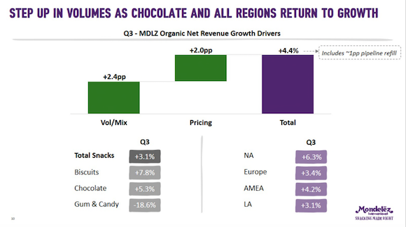 “我们第三季度的业绩在所有关键指标中都表现强劲,随着发达市场需求的持续上升和新兴市场需求的持续改善,收入增长广泛。“亿滋国际首席执行官Dirk Van de Put表示。