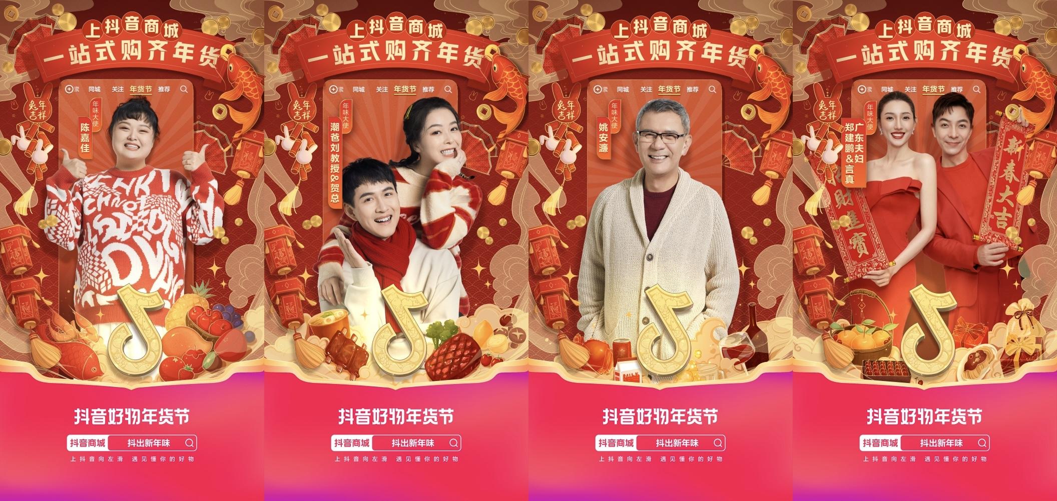 抖音电商食品健康行业围绕4大年货核心场景,邀请陈嘉佳、潮爸刘教授、姚安濂、广东夫妇等明星达人,担任年味大使,拍摄TVC和海报,定格年味瞬间。