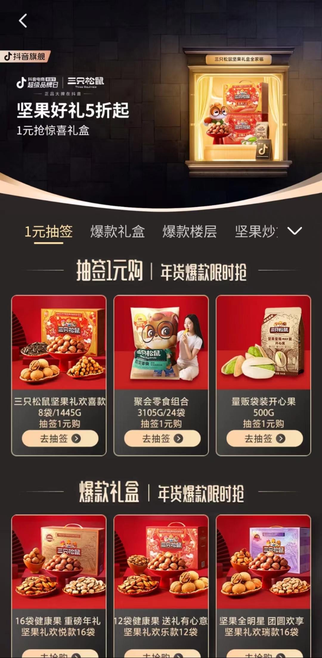 三只松鼠也在年货节期间发力全域营销。在内容场,三只松鼠达人直播与品牌自播齐头并进,配合直播矩阵号打造等一系列动作;在货架场,品牌在商城端推出会员券叠加平台满减活动。三只松鼠通过全站年货氛围打造、流量推荐和达人短视频锚点引流等,实现了场域联动,成功引爆年货节销售。据统计,三只松鼠年货节期间商城销售占比从原先的5%提升至30%,成功诞生了多个商城爆品,品牌自播、商城销售等也均成为食品行业零食/坚果类目第一。