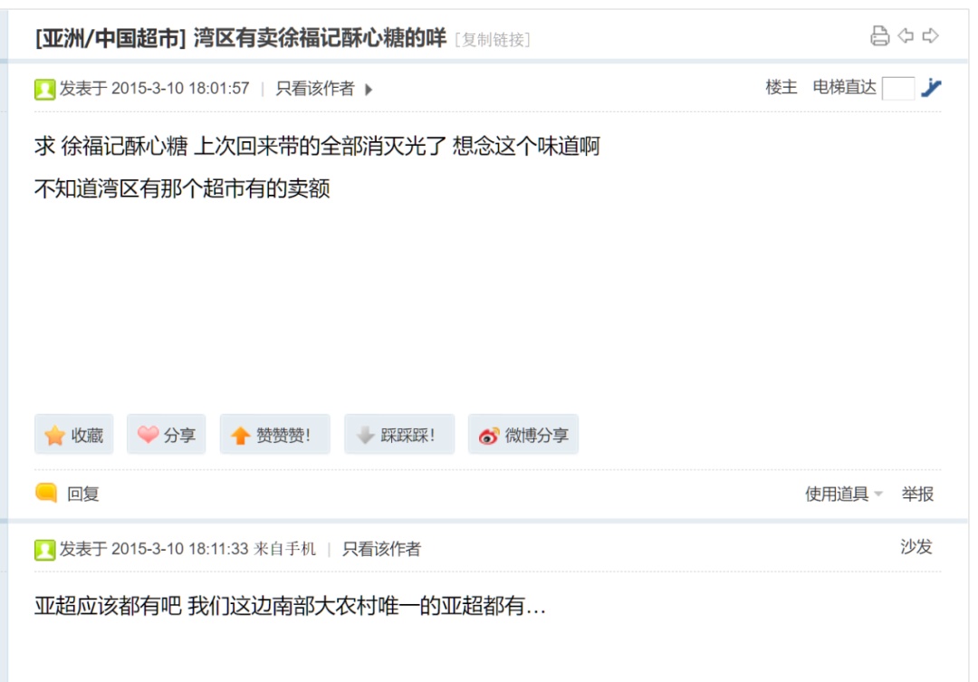 徐福记作为中国零食品牌常青树,拥有大批从小成长起来的爱好者。很早便有海外华人在论坛、社区求购徐福记。