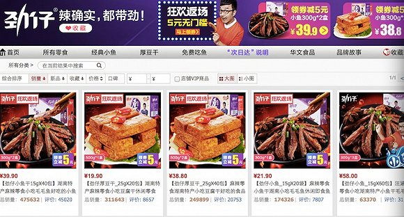 2013年湖南卫视主持人汪涵开始代言华文食品旗下的畅销品牌“劲仔小鱼”,从其天猫旗舰店的销量来看,劲仔小鱼销量排在第一。