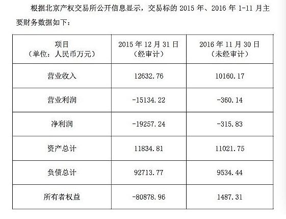 挂牌信息披露的数据,2015年度五谷道场的营业利润和净利润都为亏损状态,该年度公司负债总计为9.27亿元。2016年前11个月,五谷道场的营业收入约1.01亿元,营业利润为-360万元,净利润为-315.8万元。