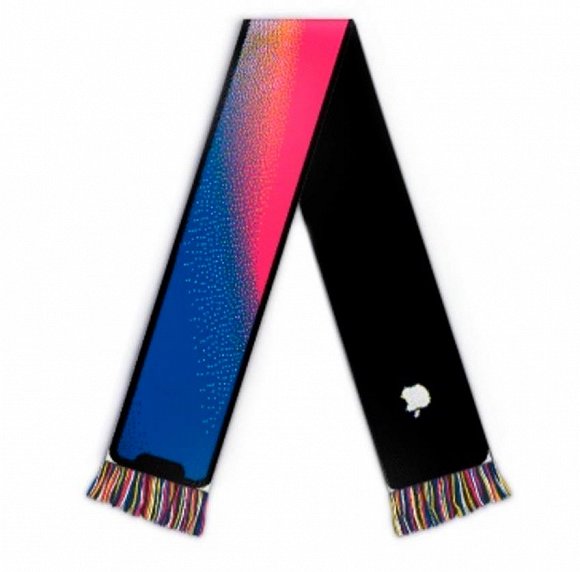 不过真的喜欢怎么办?你还可以来一条iPhoneX围巾啊。这款售价仅有35欧元(约合人民币272元)的围巾由Internet Shop出品。这是一家以出售讽刺性产品著称的网店。而这款围巾完美还原了iPhoneX的刘海造型,背面还印着一个苹果logo。