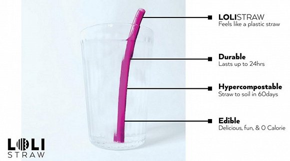 Lolistraw是一家致力于无塑料的公司,2015年他们就推出过一款可以吃的杯子,而这次推出的可以吃的吸管不仅有玫瑰、芒果、柚子等口味,还有着和塑料相似的质感,用起来完全没问题。在环保性上,这款吸管在水中24小时后就会降解,空气中60天后也会降解。