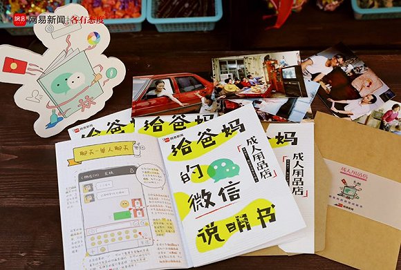 这个店是一家汤浅政明风的90年代复古小卖部,目的就是为了让90后们感同身受。虽然叫成人用品店,但店里的产品却都是教你像大人一样佛系处世的东西:爸妈版微信使用说明书、换位思考头套、西红柿鸡蛋套装、好孩子话术指南、代际和平相处书单、“妈,我很好”直播支架。总之,都是让你在父母面前做个好孩子,做个成熟的大人的产品。