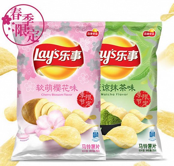 乐事推出了两款春季限定的新品薯片——“原谅抹茶味”和“软萌樱花味”,让你吃完就能原谅她/萌萌哒。这两款新品一看就是朝着引爆社交媒体去的,两款产品都只在春季限时售卖,分别融入了樱花和抹茶的味道。据了解口味还是比较清淡的,只有淡淡的甜味。