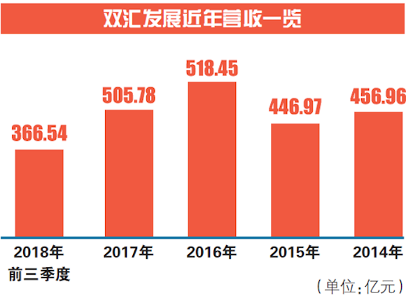 事实上,2017年以来,双汇业绩有所下滑。2017年,双汇A股上市主体双汇发展的营收为505.78亿元,同比减少2.44%。2018年,双汇发展前三季度的情况也未好转,营收仅366.54亿元,同比下降1.83%。同期,由于冻品库存及肉制品原料增加,双汇发展的存货额大幅增加,从2017年三季度的29.28亿元上升至2018年三季度的38.19亿元。