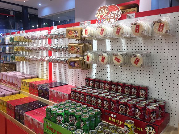 从去年2018年12月开始,50家旺仔主题门店在15个省份和直辖市开出,里面卖的多是旺仔的周边产品。涵盖了T恤、包、雨伞、杯子、手机壳、抱枕等等。
