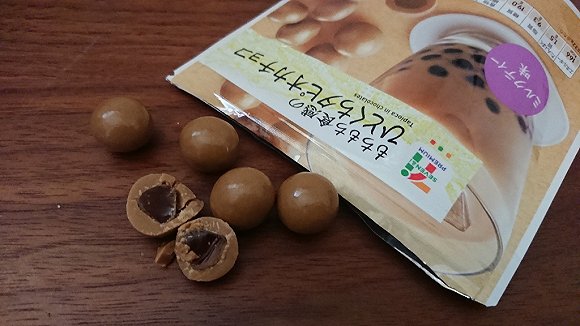 比如最近日本便利店7-Eleven就推出了一款限定的珍珠奶茶巧克力:内部是木薯淀粉做的口感类似珍珠的软糖,外部则包裹着奶茶味的巧克力,售价149日元(折合人民币9.5元)。这款糖果乍一看像麦丽素,不过内部则是实打实的珍珠,据说冷冻食用口感更好。此前,7-Eleven还曾经推出过珍珠奶茶果冻。