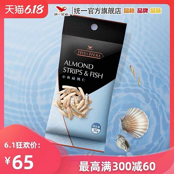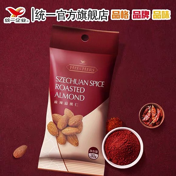 近日,统一在天猫旗舰店上架了两款His&Hers牌的坚果零食新品,分别是麻辣扁桃仁和小鱼扁桃仁。