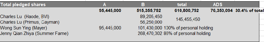 陆正耀和钱治亚的质押率 资料来源 / SEC