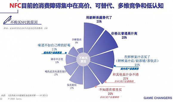 根据市场研究集团益普索今年7月发布的报告《益普索2020健康饮食趋势洞察-NFC果汁》称,中国整体果汁增长,但NFC果汁仍是小众产品。