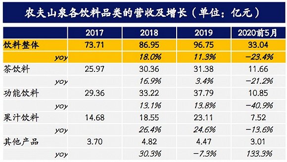 至少目前看来,与娃哈哈、康师傅等饮料巨头相比,农夫山泉依然处于高复合增长阶段。。2017年至2019年,农夫山泉收益的复合年增长率为17.2%,2017年至2019年及2020年5月31日止五个月,净利润率分别为19.4%、17.6%、20.6%、23.8%及22.3%。