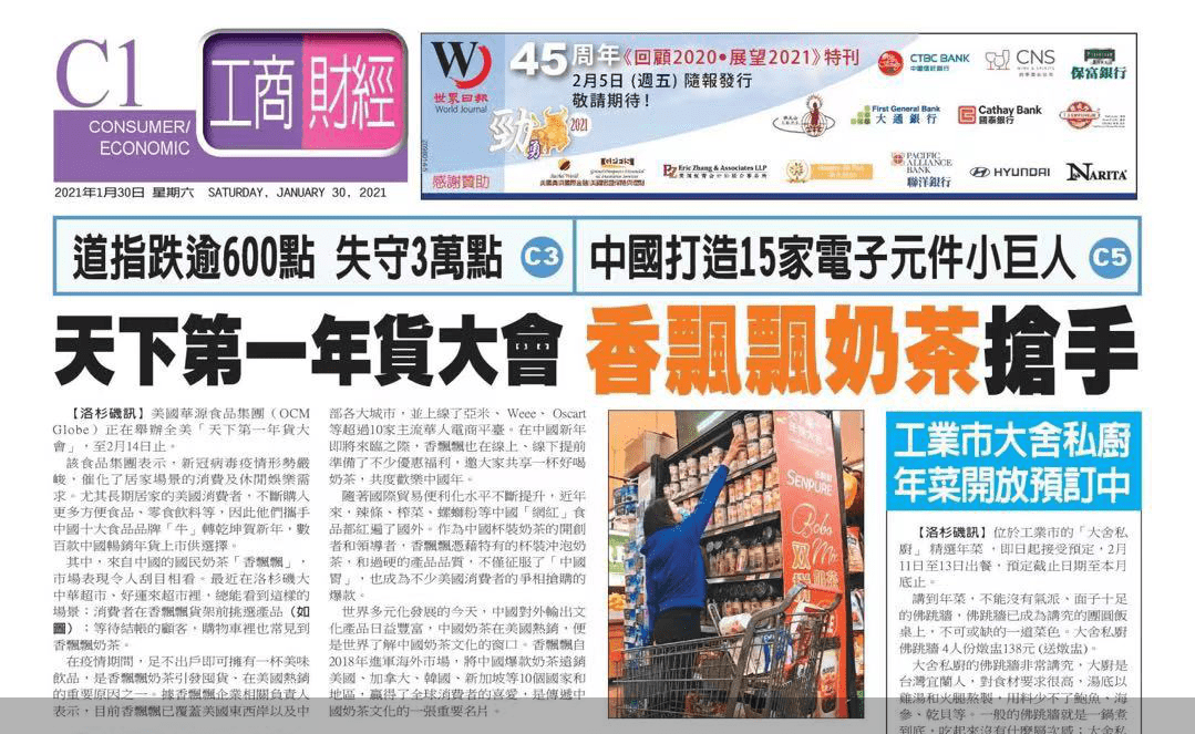 继卫龙、老干妈之后,中国杯装奶茶的开创者和领导者香飘飘,凭借杯装冲泡奶茶的差异化定位、过硬的产品品质,征服了“美国胃”。甚至吸引了世界日报等权威媒体的强势关注,带动了大量海外网红自发种草。