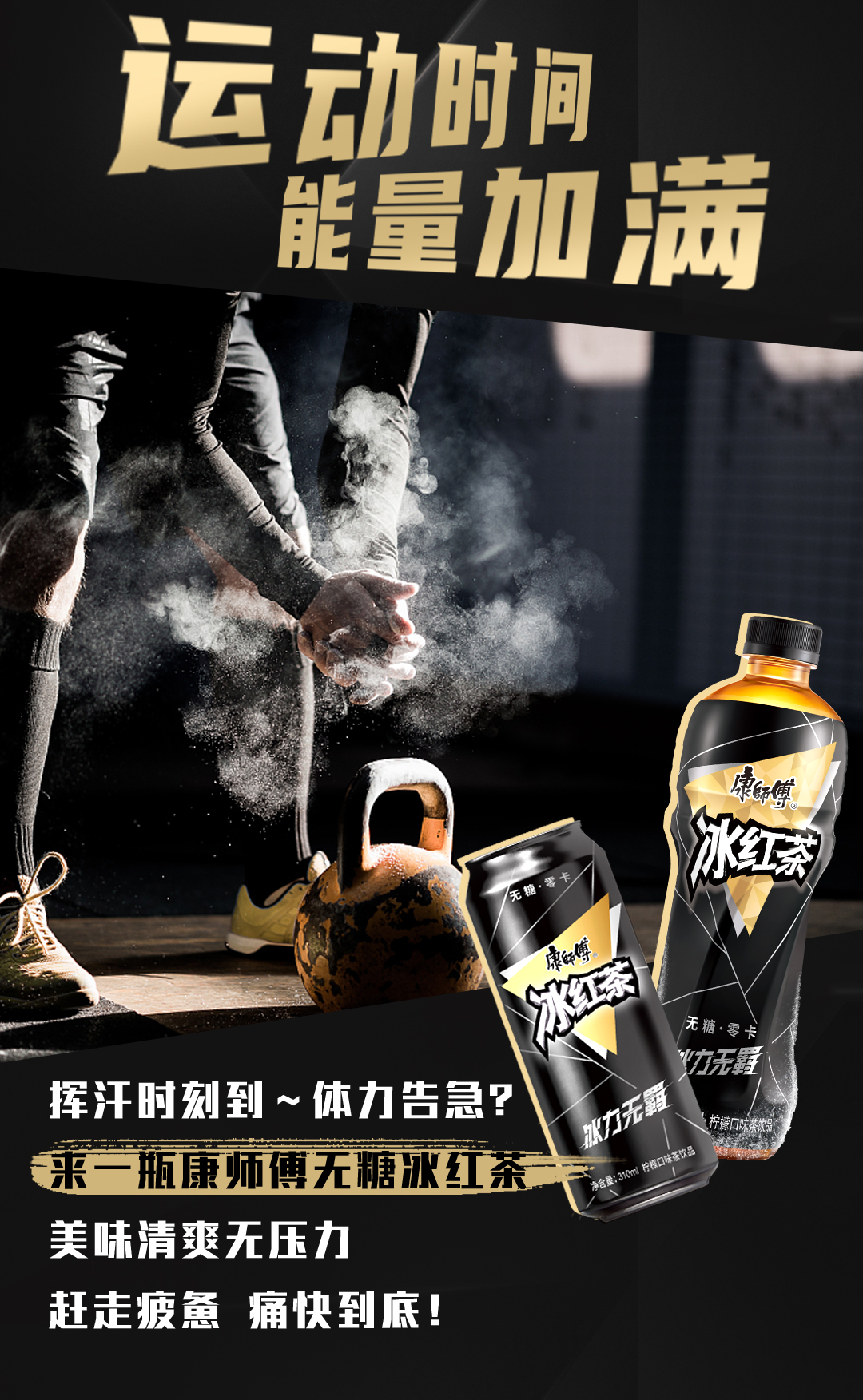 不止如此,康师傅无糖冰红茶的无糖成分还解锁了新的饮用场景。对于健身人士来说,他们往往对含糖过高的饮料“敬而远之”,康师傅无糖冰红茶却能让他们无后顾之忧地尽情享用,完美诠释品牌 “无糖零卡 冰力无羁”的理念。