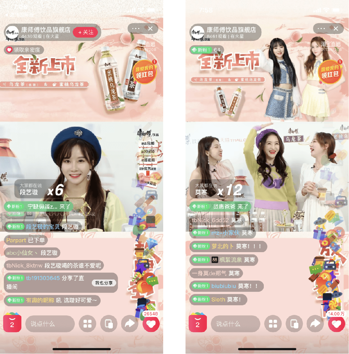 作为茶饮市场的引领者,康师傅饮品显然是捕捉到了这一新趋势,为了满足年轻消费者日渐强烈的低糖低脂以及多口味需求,近日,康师傅饮品全新推出康师傅乌龙茶和康师傅蜜桃乌龙茶,以“最强兄弟”联手出击,再次发力乌龙茶品类市场,为消费者带来好口味的同时,更带来健康收益。与此同时,康师傅乌龙茶和康师傅蜜桃乌龙茶更官宣新生代年轻偶像SNH48莫寒、段艺璇、张雨鑫为新品体验官,在年轻圈层得到极大曝光的同时,更通过直播活动,将新品上市信息强势扩散,进一步助推新品销量一路走高。
