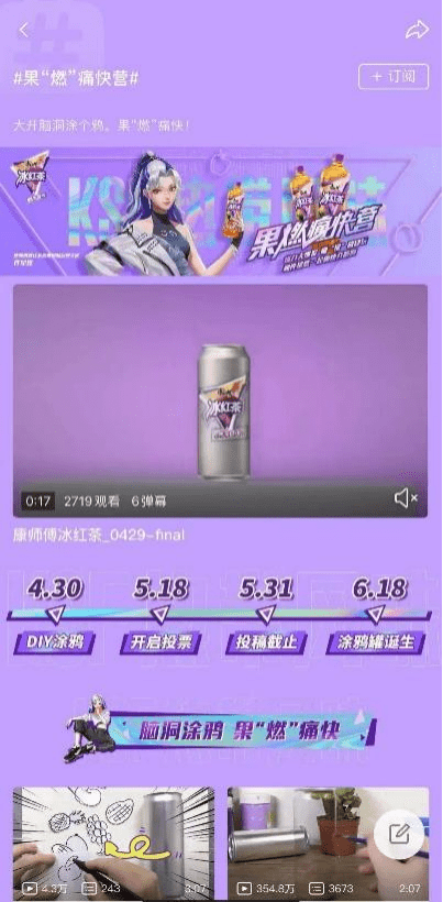 这不仅是一次精彩的品牌营销,更是提升行业整体水平、创新玩法的一次成功尝试,我们期待康师傅冰红茶热带风味带来更多惊喜。提醒大家,罐身涂鸦活动还在进行中,大家可以关注B站#果“燃”痛快营#专题页,欣赏更多精彩的脑洞作品,还可以为你喜欢的作品助力加燃噢!除此以外,后续还有康师傅冰红茶热带风味与许星悠燃歌热舞的合作,感兴趣的朋友别错过。