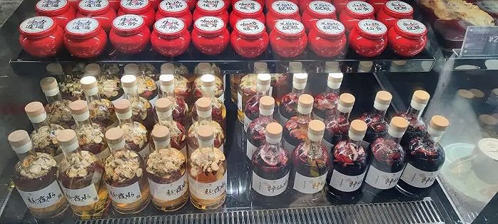 燃财经发现,尽管该店的面积大了很多,但根据菜单来看,所售产品与骏豪店相差无已。而除了熬夜水和神仙水,门店还有“冷香逍遥”、“丹凤冻龄”、“黑枸杞靓眼”等膏状产品。当日中午十二点左右,燃财经发现,在双井店柜台里存放“熬夜水”和“神仙水”的所剩数量还颇多,便对销量产生了质疑,问道,“这些产品当天都可以卖完吗?”