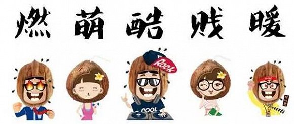在小茗同学靠个性化包装赢得销售奇迹后,各大饮料品牌在包装上都打起了“年轻人个性”的主意,这款饮料也没放弃在包装上对年轻人的“迎合”:活泼的颜色基调下,穿着 Q 版职业装的一男一女卡通形象,顶着醒目的核桃头和椰子头,占据着 1/2 个罐身。