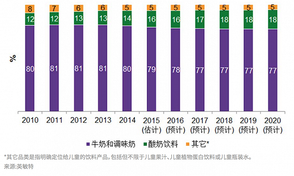市场研究公司Mintel给出的预测数据是,2020年儿童饮料销售额将达到660.43 亿元人民币,而2015-2020年间的年均复合增长率将达7.5%。