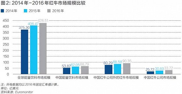 在严彬的努力下,中国红牛快速发展。根据快消行业权威数据调研公司Euromonitor的资料,2014年-2016年,红牛在中国的销售额分别为人民币169.03亿元、201.15亿元、221.63亿元;红牛在全球的销售额分别为107.81亿美元、120.88亿美元、123.72亿美元;按当年汇率折算,中国红牛占红牛全球的份额分别为25.52%、26.72%、26.97%。