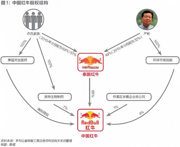 在正式进入中国市场前,双方先于1995年3月27日成立了红牛维他命饮料(泰国)有限公司(下称“泰国红牛”)。泰国红牛是一家单纯的持股公司,至今没有其他资产。许氏家族和严彬的持股比例分别是68%和32%。