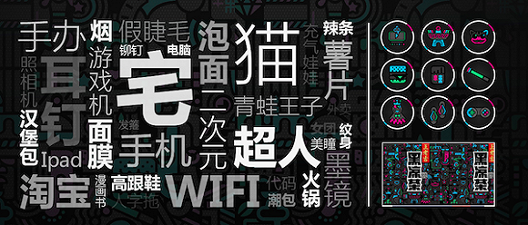 整个包装设计有点电玩、二次元风格,看着有点像深夜霓虹灯亮起的街区。这个包装由著名设计师潘虎制作,并获得了 2017 年红点奖。