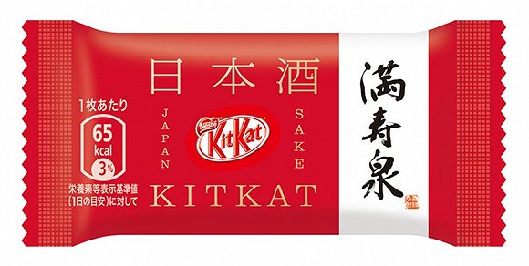 其实去年年初,KitKat就已经推出过日本清酒口味的白巧克力了,不过这次,他们找上了知名日本酒品牌“满寿泉”,合作推出了全新的清酒KitKat。