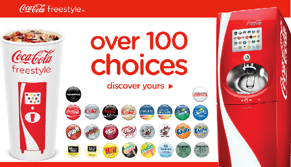可口可乐自动饮料机(Coca-Cola Freestyle machine)是该品牌自2009年起开始推出的机器,目前在全美的投放量有5000多个。自动饮料机里可以提供超过100种可口可乐旗下饮料的选项,一些并不在商店中以装瓶形式贩售的口味,都只能在这个自动饮料机中买到。比如橙子味的健怡可乐、红莓桃子味的Mello Yello汽水。可口可乐对这些机器做了触屏操控的升级,让消费者可以自己选择搭配汽水的口味,这样一起来,能获得的汽水口味增加到了300种。