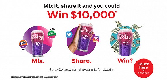 可口可乐会从这些上传了配方的消费者中,选出5人进入决赛,分别给予100美元的支票,而他们独创的口味,这个夏天就会出现在全美的自动饮料机上、供消费者尝试。在活动期间,获得最多下单量的一位,便是最终胜者。