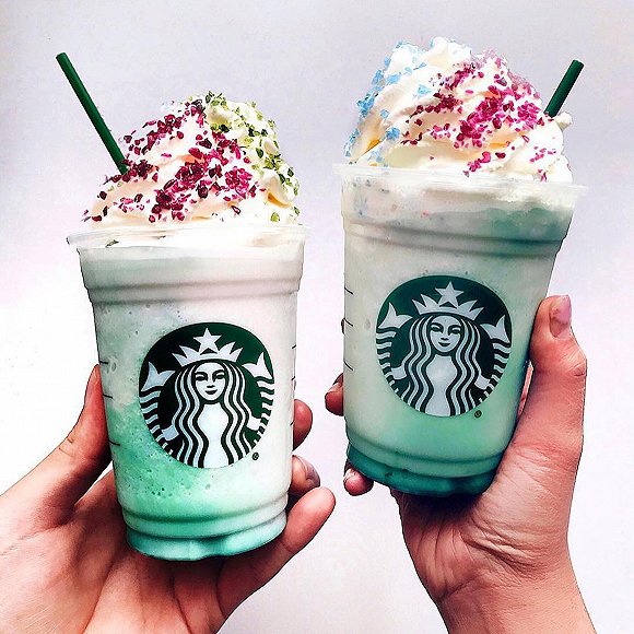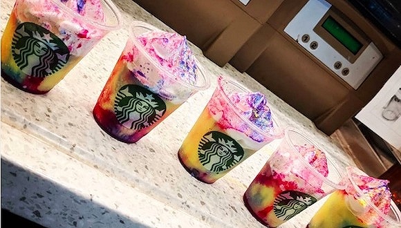 星巴克两年前推出的“独角兽星冰乐(Unicorn Frappuccino)”是2017年夏天最火的社媒网红产品之一。这个以白摩卡为基底、混合了芒果糖浆和蓝色、粉色糖粉的饮料呈现出一种非常少女心的紫色渐变,上面还有一大份稀奶油,当年仅限时5天推出,时至今日仍有不少消费者念念不忘。