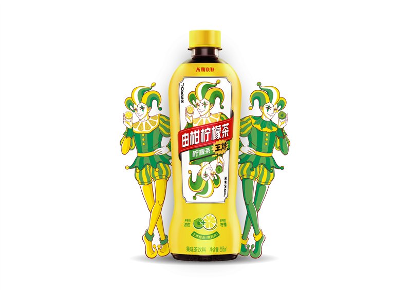 同时,新装由柑柠檬茶在包装上更加强调视觉冲击力,采用扑克牌中的大小王的“痞帅”形象为主视觉,分别代表柠檬大王和油柑小王,充满二次元气息,更加符合当前饮品的主流消费群体审美诉求。
