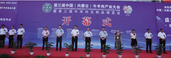 上午9时,第三届中国牛羊肉大会正式开幕,开幕式由赤峰市委常委、常务副市长郑洪学主持。国家质检总局原总工程师刘兆彬、中国食品工业协会副会长兼秘书长沈篪、中国肉类协会常务副会长兼秘书长陈伟、中国食品报社副社长李红文、赤峰市委副书记、市长孟宪东、赤峰市副市长汪国森等出席开幕式。