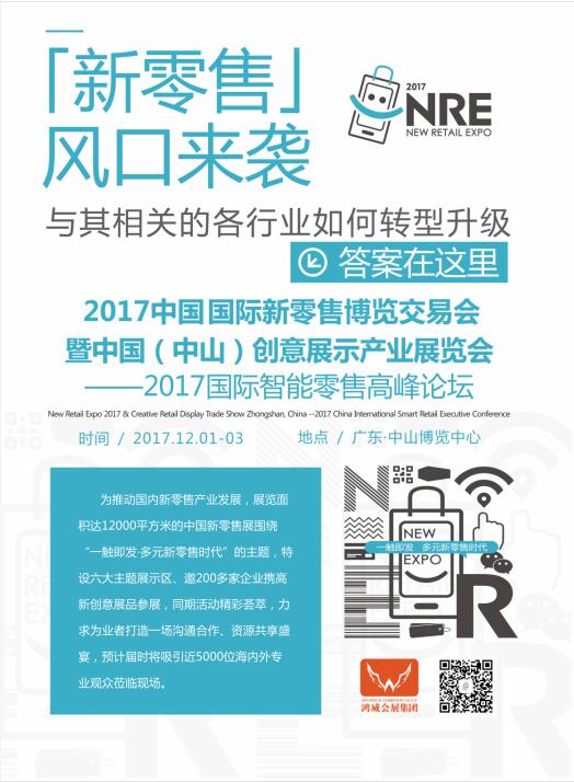 “新零售”、创意展示虽是大潮流,但并非所有零售企业都能顺势而为,为帮助各零售企业深入了解“新零售”及其未来发展趋势,顺利连接“新零售”生态圈,从传统零售模式转化为“新零售”运作模式,由广东省文化产业促进会、中山市文化创意产业协会与广东鸿威国际会展集团,围绕“一触即发·多元新零售时代”为主题联手搭建的智能零售、创意展示全新平台——“2017中国国际新零售博览交易会暨中国(中山)创意展示产业展览会——2017中国国际智能零售高峰论坛”诞生了。