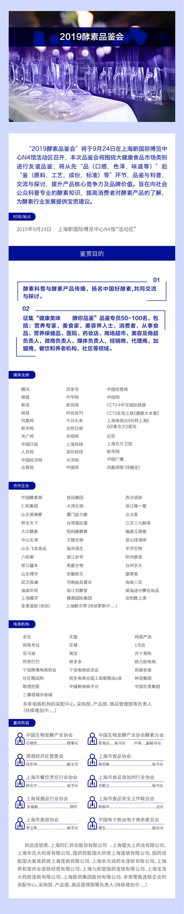 现征集品鉴专员:从事营养专家,美食家,美容界人士,消费者;从事食品、营养保健品、医院、药妆店、商场超市、美容及商超负责人,微商负责人,媒体负责人,经销商,代理商,加盟商,餐饮和养老机构,社区等领域人员均可免费报名。还可提前获得大会资料,嘉宾VIP证,免费班车接送,媒体专访等豪华礼遇。您还在等什么呢?我们期待您的参与!让我们一起为酵素正名,为酵素扬名,打造中国好酵素!