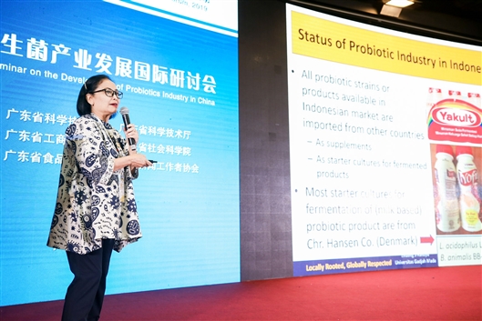 印度尼西亚日诺市加札马达大学教授、亚洲乳酸菌学会联盟主席Rahayu在报告中。