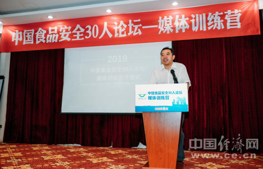 中国经济网总裁王旭东在2019中国食品安全30人论坛—媒体训练营上致辞。经济日报-中国经济网记者李凡/摄