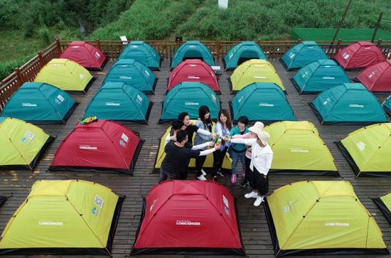 青岛啤酒·2019第十二届武功山帐篷节同样是分四季主题展开,“梦幻星空”毕业狂欢季、“鹊桥星空”浪漫七夕季、“清凉星空”云巅上的啤酒季、国庆露营嘉年华季。活动前后历时三个多月,上十万游客齐聚云中草原,共享万亩草甸上的帐篷啤酒盛宴,让整个夏天不留空白。