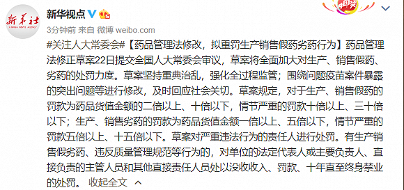 草案还对药品的上市许可持有人、生产企业、经营企业、药物非临床安全性评价研究机构、药物临床试验机构等未按照规定实施药品生产质量管理等相关规范的行为提出处罚,对单位主要负责人员和直接责任人员视情节禁止其十年直至终身从事药品生产、经营活动,构成犯罪的依法追究刑事责任。